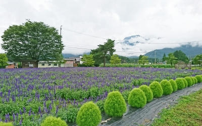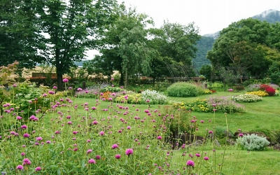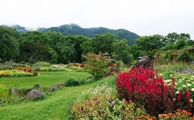 雨上がりでしっとりとした緑、花の色も鮮やか。