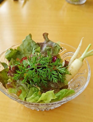 生野菜のいろどりはお花畑のようで可愛いらしい。