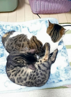 何年ぶりかでこのベッドに3匹が入っているのを見た。