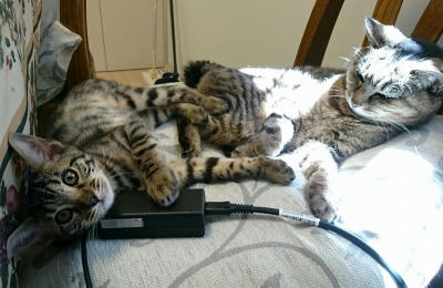 子猫は容赦ない。大人猫はひたすら耐える。