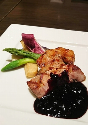 信州十四豚肩ロースのグリル ブルーベリーソース
