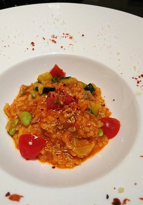 信州十四シャモのラグーと季節野菜のトマトリゾット