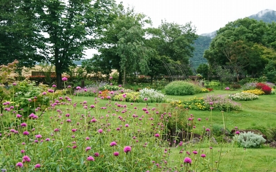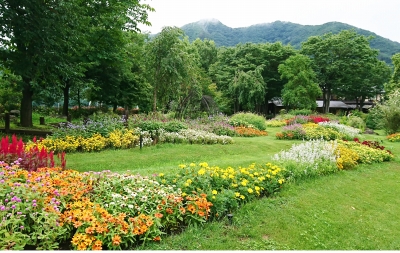 雨上がりでしっとりとした緑、花の色も鮮やか。