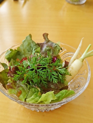 生野菜のいろどりはお花畑のようで可愛いらしい。